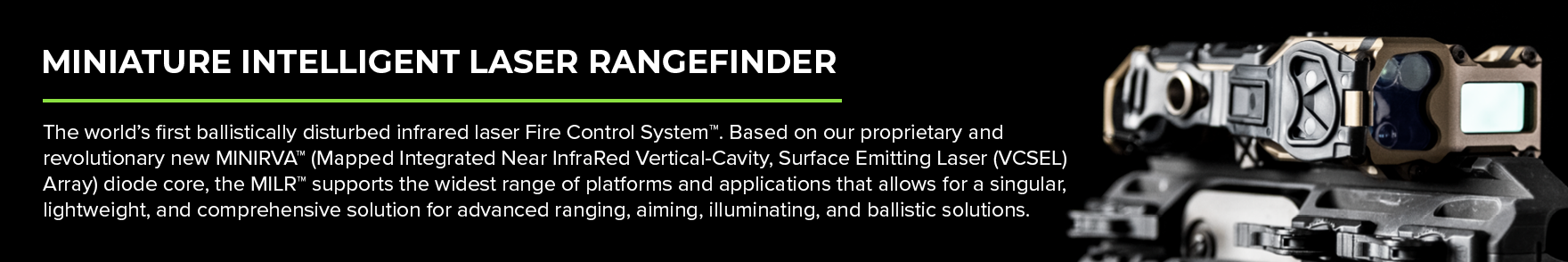 The MILR® Miniature Intelligent Laser Rangefinder is a Class 3B/3R combination high-power infrared aiming and illumination device with visible pointer, as well as range-finding ballistic computational software that can both provide holds on-screen for use with a day-optic or actively declinate the disturbed infrared aiming laser for ballistic compensation when using head-borne night vision devices.
